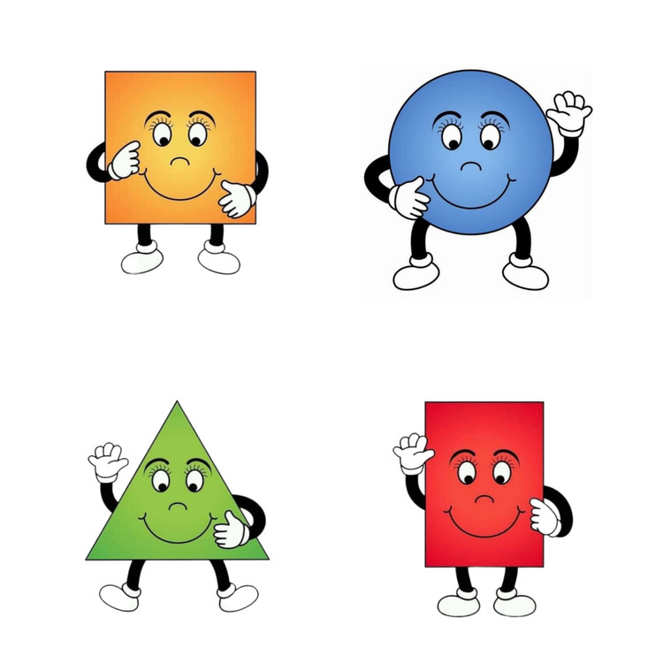 چهار عدد شکل هندسی فانتزی و کارتونی برای تزیین کلاس و آموزش به دانش آموزان لمینت شده و وایت بردی هستند